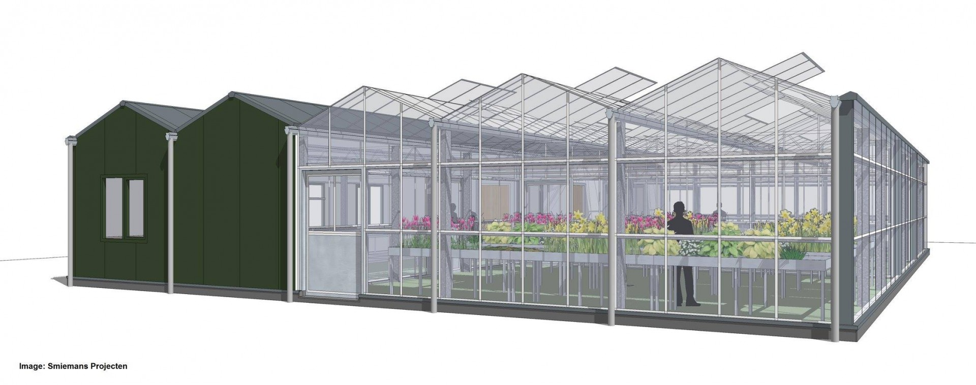 The propagation facility consists of several buildings and a greenhouse of the Venlo type. This greenhouse includes a potting area, half hardy area and propagation area. This is realized by a specialized fixed and movable cultivating tables with irrigation facilities. It also includes a computer-controlled climate system, which controls the temperature, shading and ventilation for four different zones.