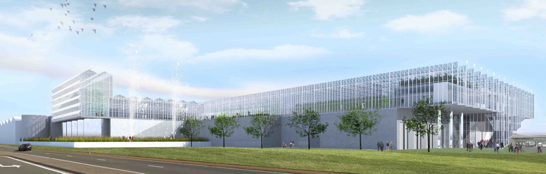 The new entrance building of the high-tech research centre of Wageningen University & Research (WUR) in Bleiswijk will have a striking glass façade that closely resembles a previous project we were involved in: the roof greenhouse in Roeselare (BE).