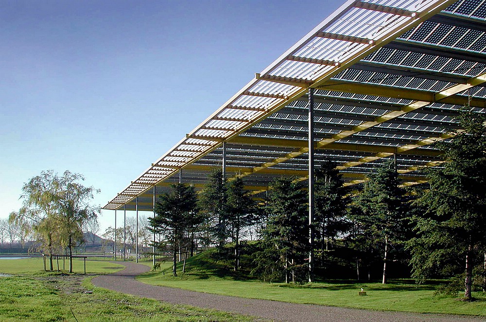 Voor de Floriade in Haarlemmermeer hebben we in 2002, als niemand nog bezig is met zonne-energie, het dak van een hal van bijna 30.000 m² vrijwel geheel voorzien van semi-transparante zonnepanelen (PV-modules). Met ruim 19.000 panelen bedraagt het geïnstalleerde fotovoltaïsche opwekkingsvermogen 2,3 MWp en was daarmee het grootste PV-dak van de wereld!